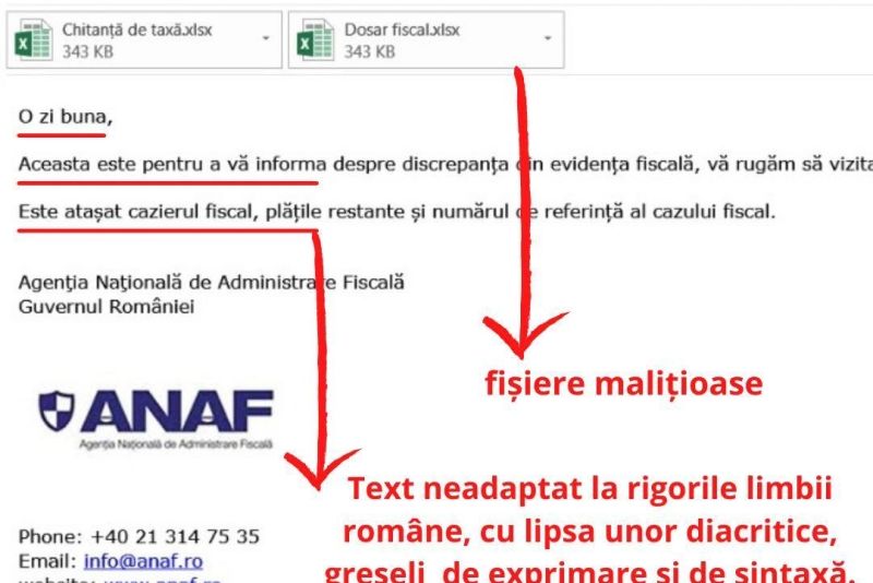 "Atenție la e-mail-urile sau sms-urile primite în perioada următoare, care pretind a fi transmise de Agenția Națională de Administrare Fiscală (ANAF)!