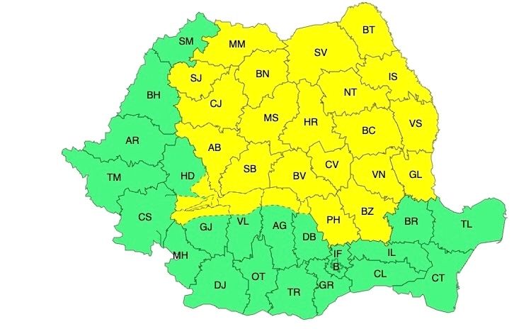 ATENȚIONARE METEOROLOGICĂ - COD GALBEN