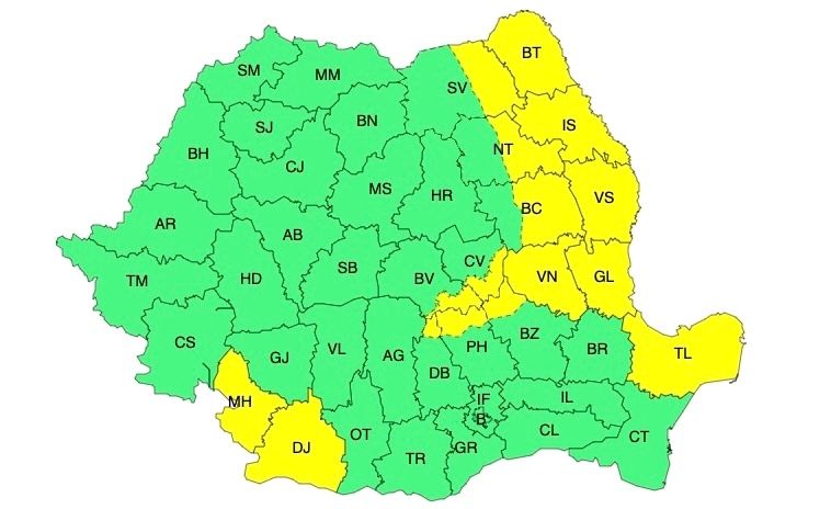 COD GALBEN DE VÂNT ȘI NINSORI VISCOLITE. ZONELE LOVITE DE FURTUNI DE ZĂPADĂ