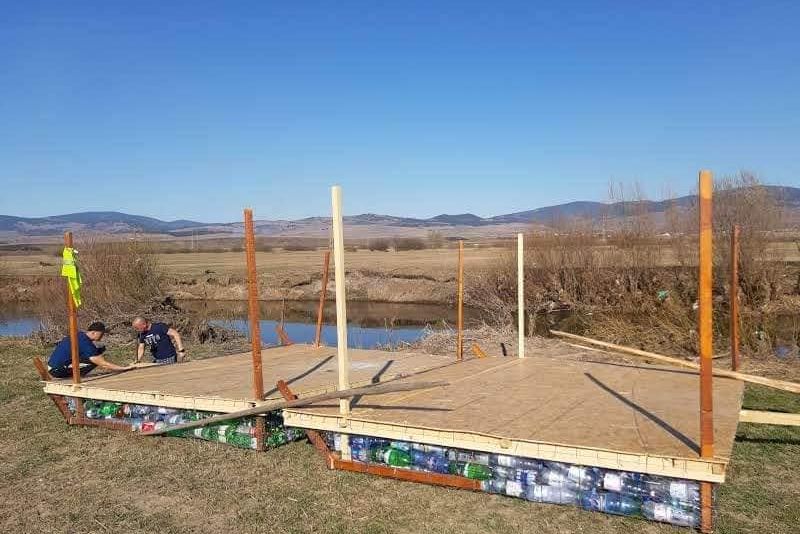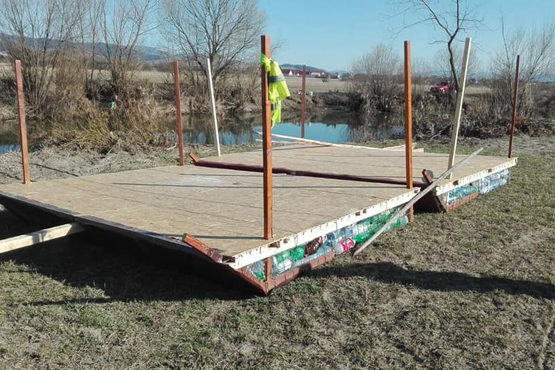 FOTO Pompierii din Gheorgheni merg cu o plută din bidoane pe tot cursul râului Mureş, până în Ungaria
