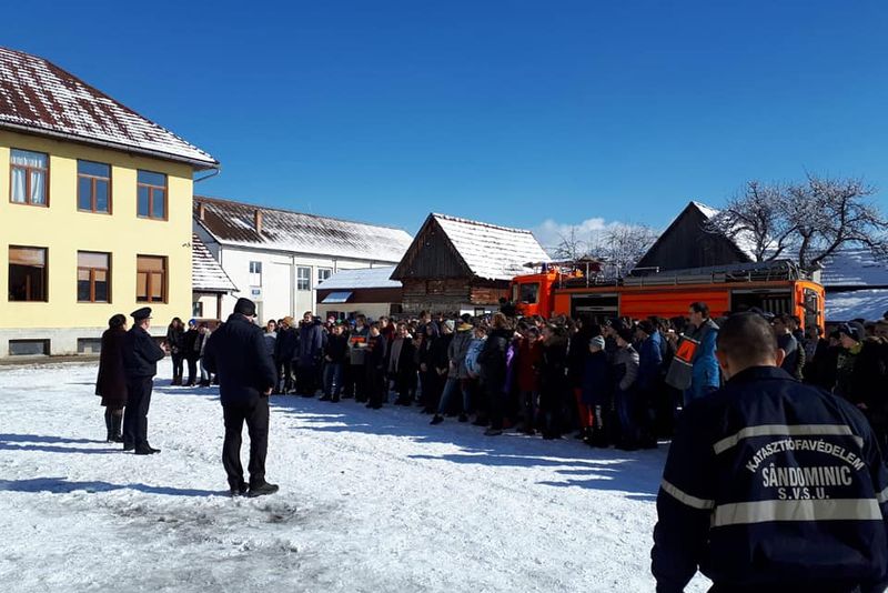 Ieri, în comuna Sândominic, Inspectoratul pentru Sitaţii de Urgenţă a desfăşurat un exerciţiu de alarmare publică, care a avut ca scenariu producerea unui seism.