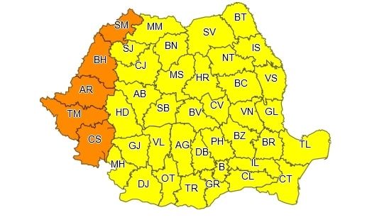Zone afectate: județele Caraș-Severin, Timiș, Arad, Bihor și Satu Mare