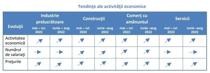 TENDINŢE ÎN EVOLUŢIA ACTIVITĂŢII ECONOMICE ÎN PERIOADA IUNIE - AUGUST 2022