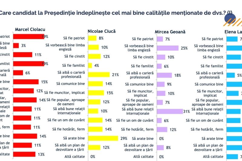 Nicolae Ciucă (PNL) este însă indicat pe primul loc drept candidatul care ar putea apăra cel mai bine țara în cazul unor posibile agresiuni externe, fiind urmat de Mircea Geoană (independent) și de Marcel Ciolacu (PSD).