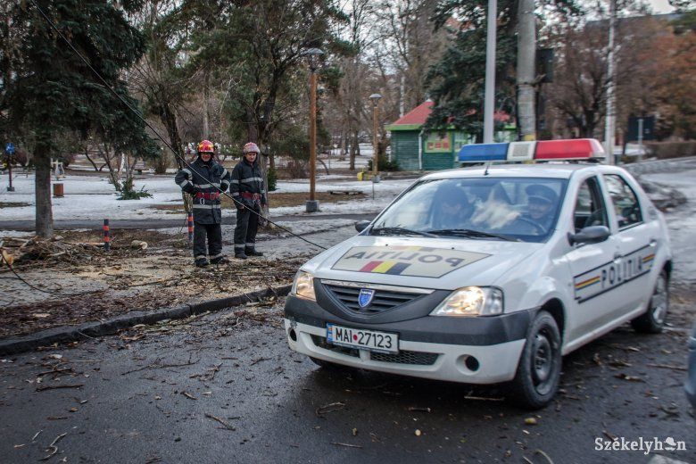 Pe bulevardul Timișoara din Miercurea Ciuc, chiar lângă parcul orașului, o creangă groasă a unui copac a căzut. Nu au fost înregistrate pagube, dar două mașini au fost în peericol să fie avariate. Traficul pe strada Kőrösi Csoma Sándor a fost închis duminică dimineață până când crengile au fost ridicate e de pompieri, scrie www.szekelyhon.ro.De asemenea, din cauza vântului puternic, alimentare cu curent electric a fost întreruptă în mai multe comune din Harghita. Duminică dimineață, aproape 3.500 de locuitori au rămas fără electricitate în Sândominic, Tomeşti, Inei, Dăneşti, Cârţa și Mădăras. Asta după ce au fost distruse șase stații de transformare a curentului electri și mai mult de douăzeci de linii. Mai mulţi muncitori lucrează deja pentru a rezolva problema, mai scrie sursa citată.